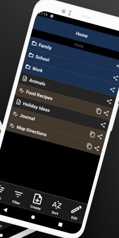 • NOTES: Create simple text files. When you just want to type or paste text and nothing more! Notes are saved and shared as just regular txt files.