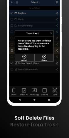 • MOVE or COPY FILES: Moving or copying files (or folders) to another folder is a breeze.